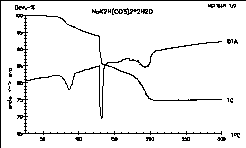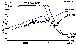 Wegscheiderit Na2CO3 * 3 NaHCO3 - was the theme of this measurement. The Na2CO3 / NaHCO3 / H2O system is complex and includes Trona Na2CO3 * NaHCO3 * 2 H2O as well. See the displacements of the base lines resulting from the different heat capacities of the samples. |
