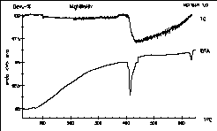 Watching chemical reactions involving the atmosphere like decomposition or synthesis it is always interesting to use differential thermal analysis and thermal gravimetrics simultaneously. This is a famous way to get ideas about chemical reactions and to distinguish them from phase transitions. Note that the y-axis has two different scales at a time - differential temperature and weight percent. |